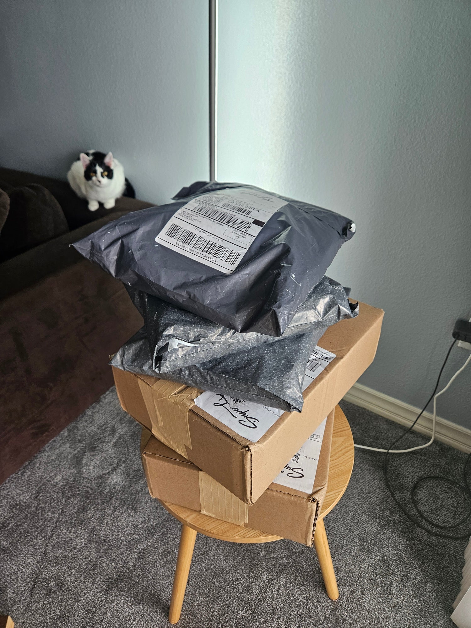 Peek behind the scenes as Moomoo the cat oversees our meticulous QC process during a bustling delivery day at TheSuperLa Studio.
